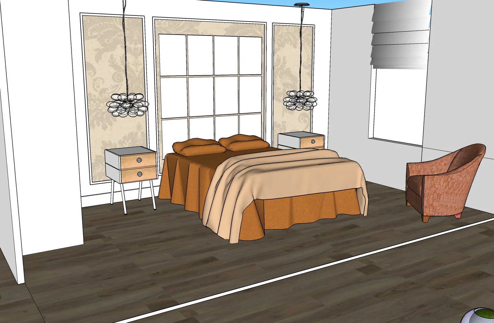Do things in the right order, destructive elements first, then work your way inward. We started by ripping the carpeting off the floor and calling in an electrician to move the electrical wiring and fixing the lighting in place. Roy repaired walls and ceilings, and I painted. And then again for the wall panels and trim, Roy constructed, and I painted. We hung the wallpaper. I made the pendants from some fishing wire and glass orbs purchased from Crate & Barrel, hanging on custom made lighting wires from Urban Cottage Industries. Finally, literally on our way ‘out the door’ we installed new flooring.